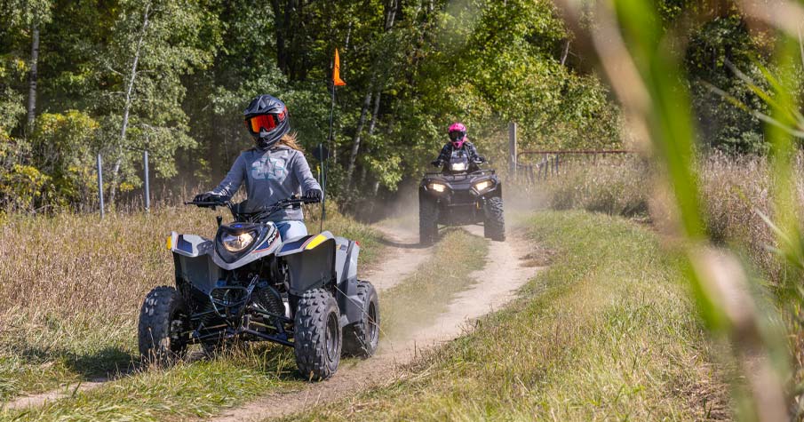 Con un motor de 4 tiempos, 196cc y limitador de velocidad ajustable permite a los jóvenes conductores crecer con su ATV. Hecho para conductores mayores de 14 años.